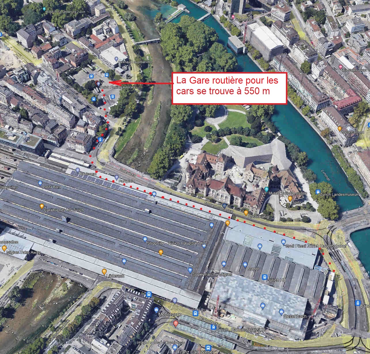 vers la Gare de Zürich à la Gare routière Sihllquai